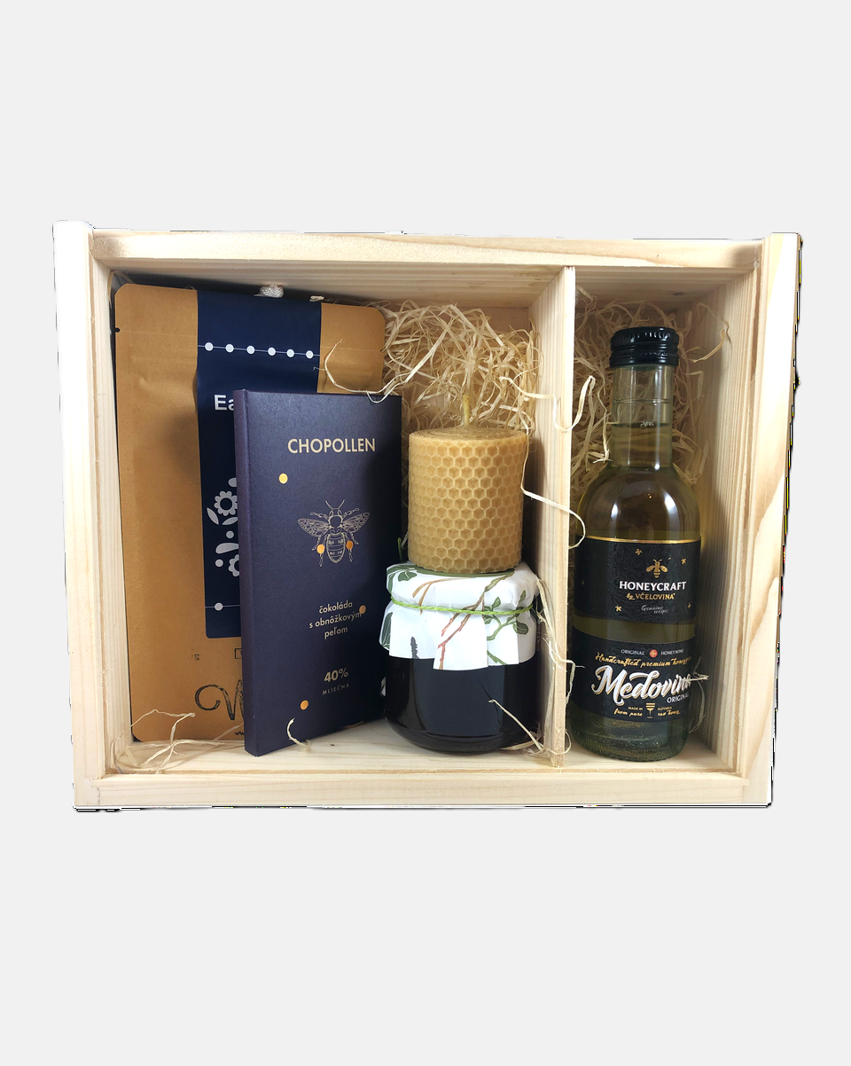 Tento balíček spája jemnú medovú sladkosť, ovocnú sviežosť a hrejivú aromatickú chuť. Kvalitná čokoláda a čierny čaj sú ideálne na relaxačné chvíle. Elegantné balenie s voňavou sviečkou vytvára príjemnú atmosféru, ktorá spríjemní večer a zanechá nezabudnuteľný zážitok.